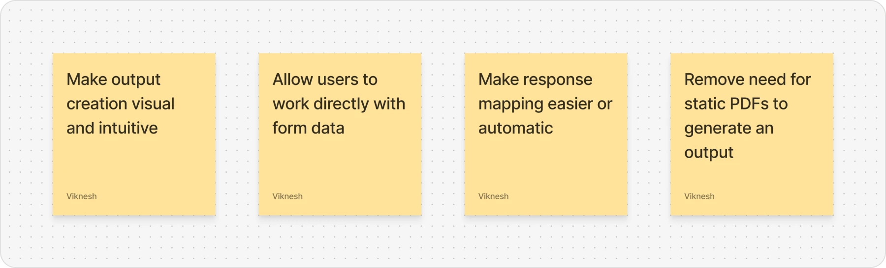 Every output depended on manually mapping response codes to static PDF templates. It was slow, fragile, and difficult to scale. Improving this flow would only make a broken system slightly better. So instead of asking how we could make PDF creation easier, I stepped back and asked a different question